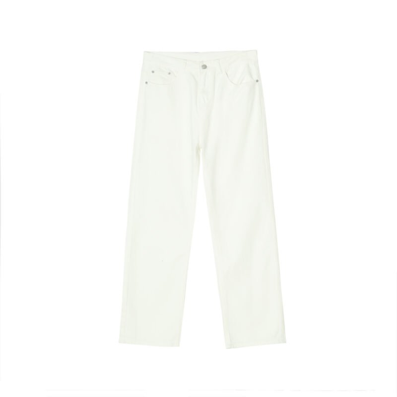 Product information: Color: white, black, light blue, mud yellow, black gray, dark blue, denim blue Elasticity: inelastic Pants length: trousers