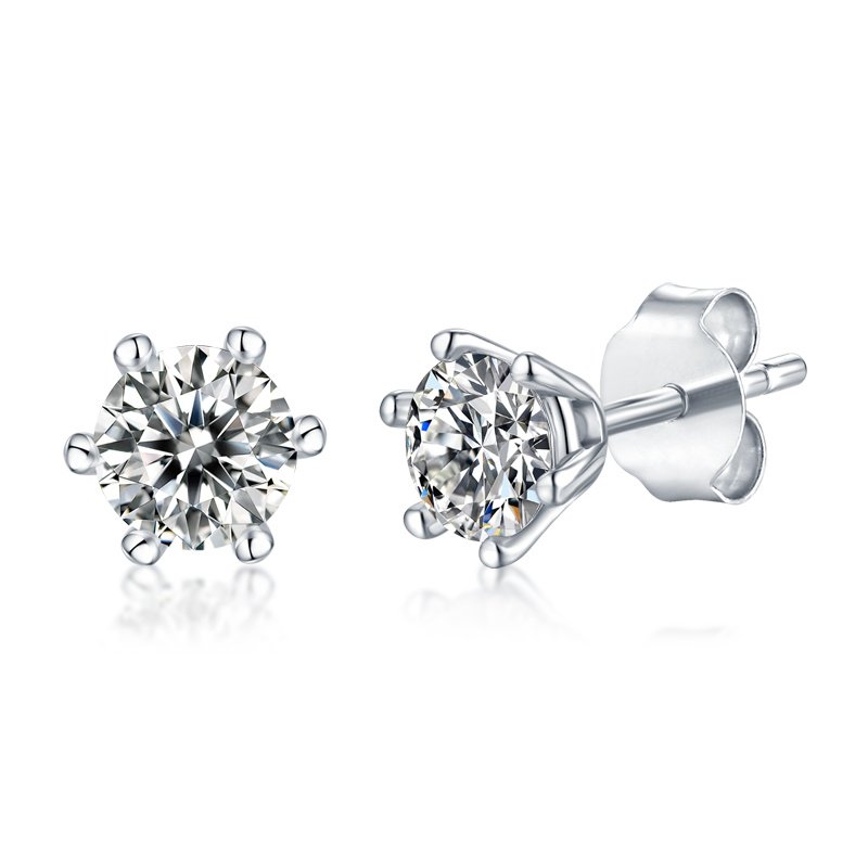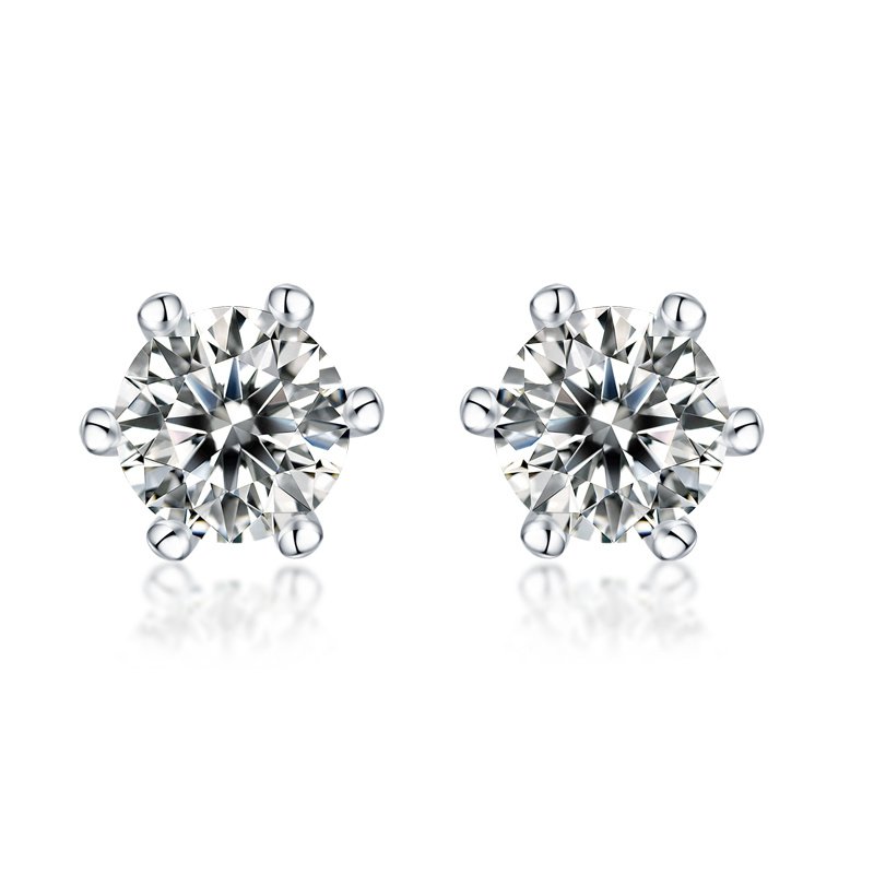 Classic Six-prong Moissanite Silver Earrings Luxury Fashion Diamond Stud Earrings
