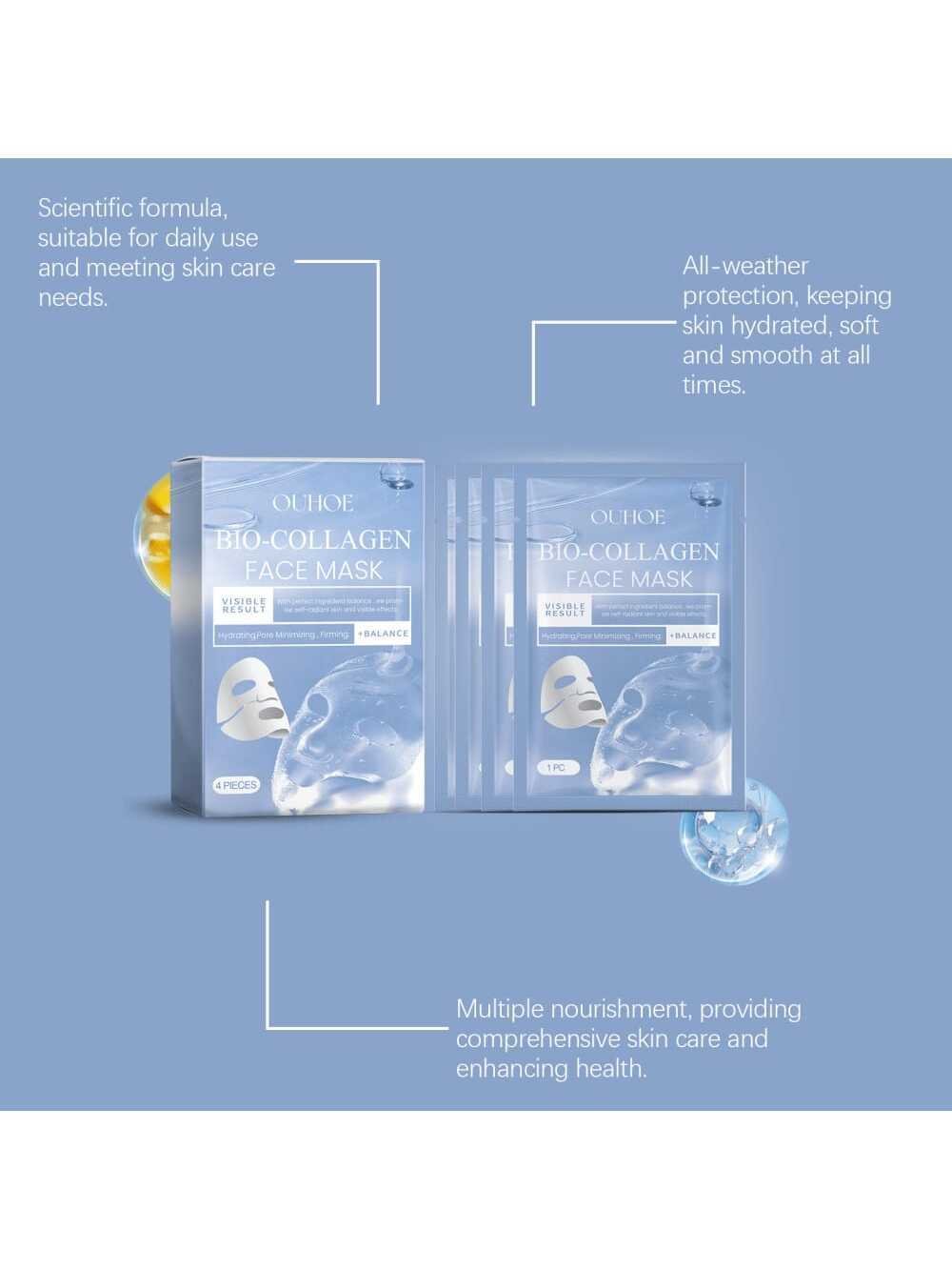 4PCS Bio-Collagen Glow Mask Overnight, Korean Deep Hydrating Firming Hydrogel Mask With Pure Collagen Films For Real Deep Mask Nourishing Experience, Suitable For All Skin Types