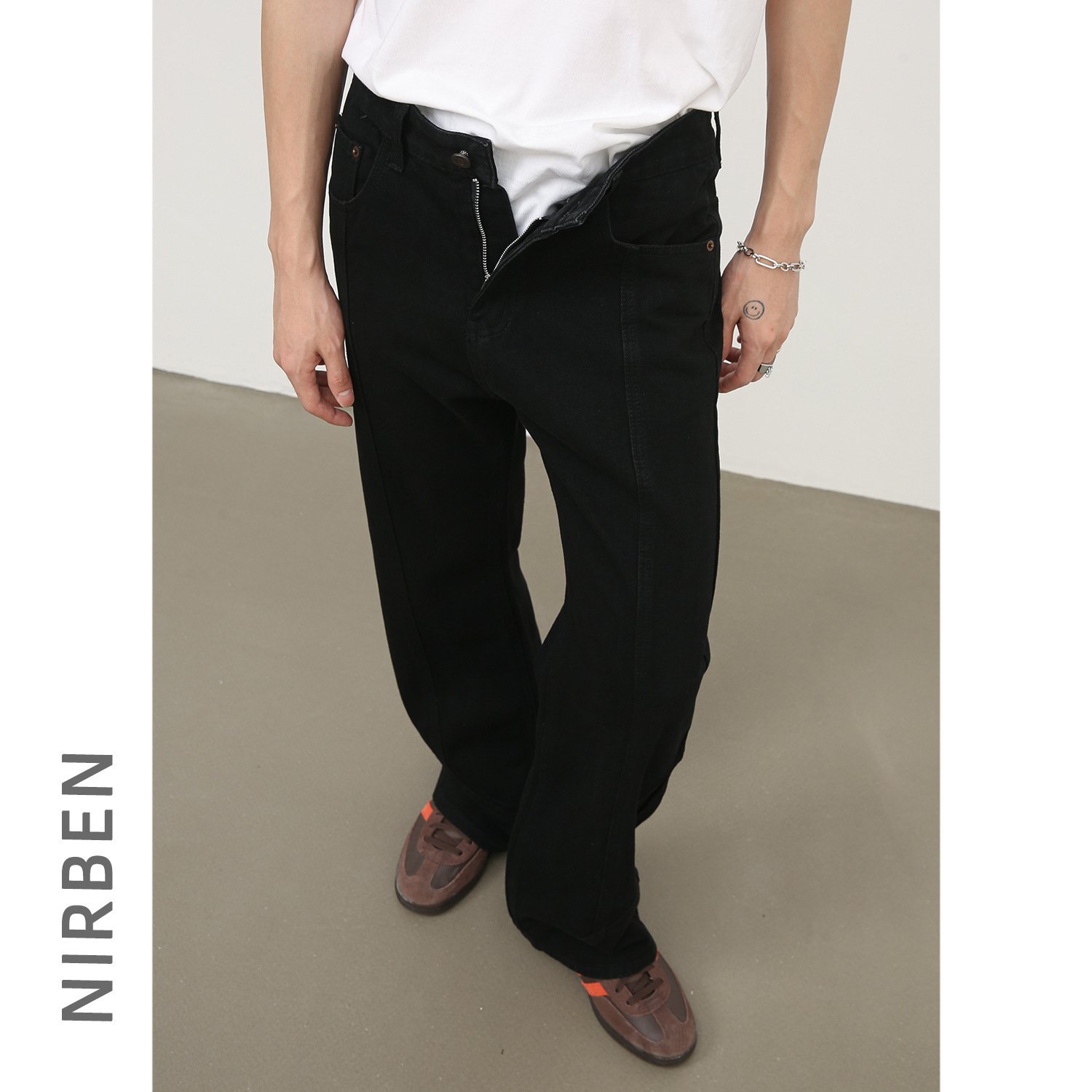 Black Weila Jeans Men’s Loose Straight American Style