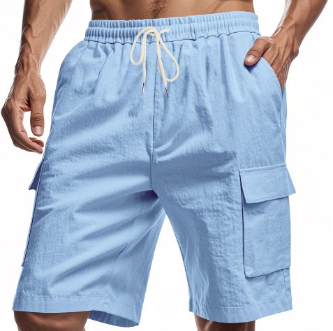Loose Sports And Leisure Solid Color Linen Drawstring Shorts