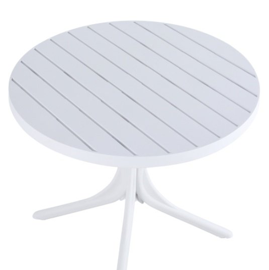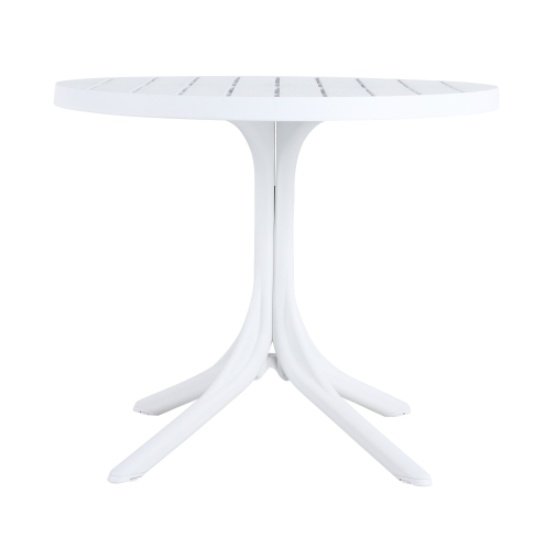 - Sleek & Versatile Design : Modern Minimalist Style: The smooth, round white tabletop blends effortlessly into farmhouse, contemporary, or boho décor—indoors or out ; Multi-Space Ready: Use as a dining table, coffee table, or patio accent in living rooms, balconies, cafes, or camping setups ; Protective Non-Slip Feet: Includes felt pads to prevent floor scratches and reduce noise.
