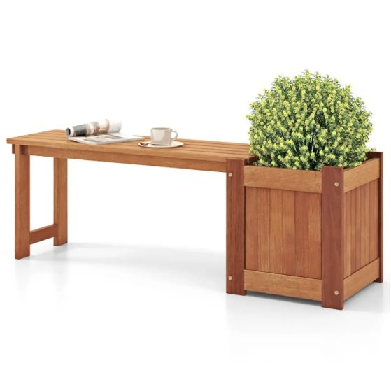 ● Enduring Wood Construction: Crafted from solid wood, the garden bench with planter box boasts exceptional crack-resistance and sturdiness. More than that, the teak oil finish not only enhances the bench’s durability but also promotes easy maintenance.