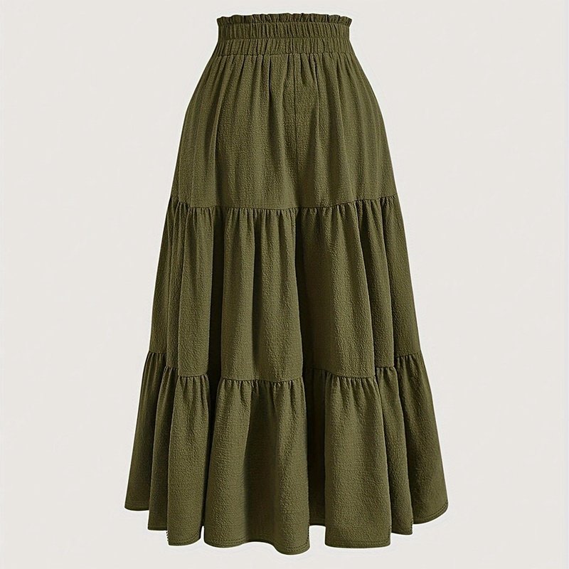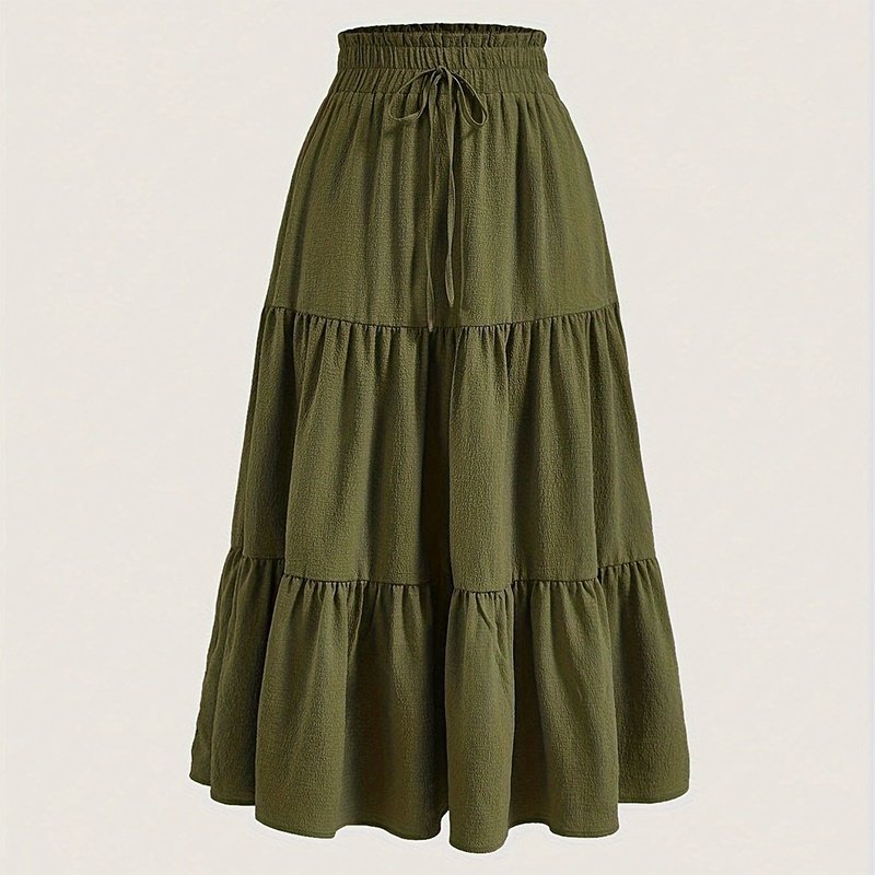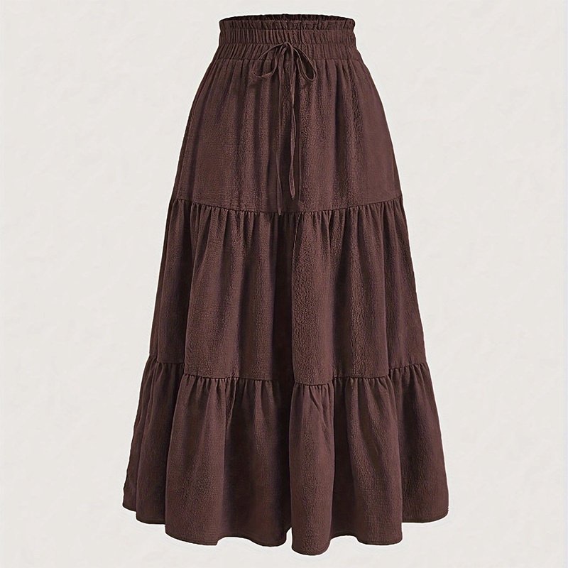 Women’s Solid Color High-Waist Knot Detail Flowy Pleated Midi Skirt – Elegant A-Line Skirt For Spring Summer
